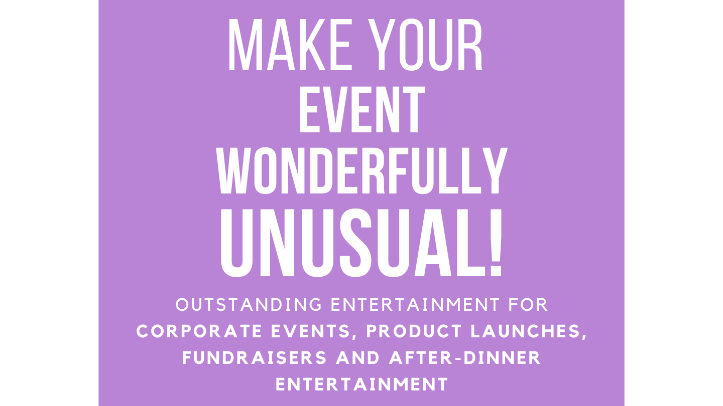 I can't wait to learn more about your event's needs and ensure that my performance is the perfect match for you. Together let's make your Event Wonderfully Unusual!